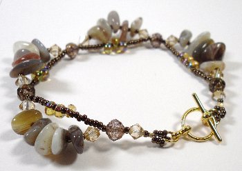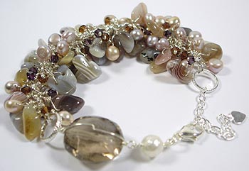 Spice Bracelet; agate pebbles, Swarovski crystal, Japanese magatama