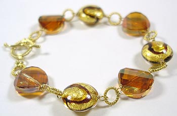and Ginger Bracelet; handmade gold-foiled Venetian glass 'lentil'