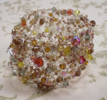 Bracelet; hand crocheted sterling silver wire sprinkled with Swarovski