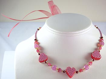 crystal, seed beads, Czech glass hearts, sterling silver, the necklace
