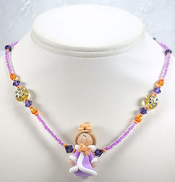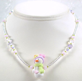 Snowman Necklace Purple & Lime; with a cute little artist-made