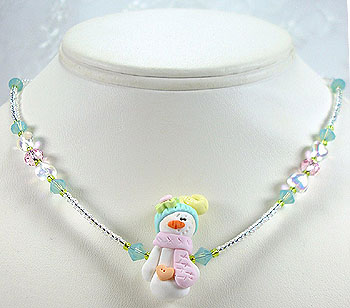 Snowy The Snowman Necklace Lemon Aqua; with a cute little artist-made