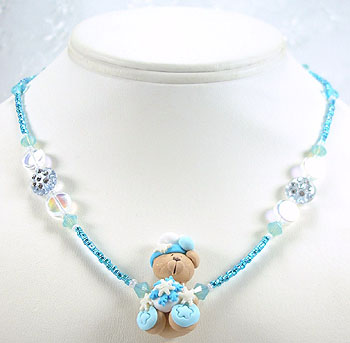 Snowbear Necklace; the handmade snowbear is artist-made polymer
