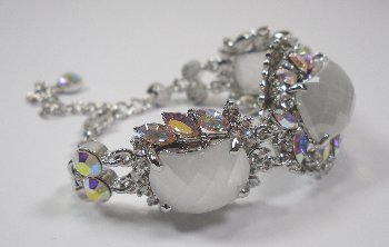 Swarovski Crystal Elements Opalescent Crystal Chunky Bracelet; Beautiful Italian design and manufacture -top quality rhodium plated, nickel free; easy to use lobster style clasp; this bracelet features opalescent milky white faceted crystal with aurora borealis crystal. Measures approx. 1.5 x 10.5 inches/ 3.5 x 27 cm using the extender chain. £38.00 |