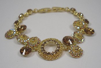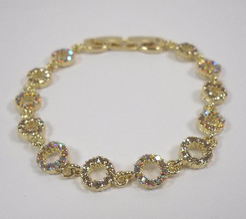 Swarovski Crystal Elements Circle Design Colrado Topaz/ Aurora Borealis bracelet - high quality Italian design and manufacture; 25kt gold over nickel free rhodium plated, secure foldover clasp. Measures approx. 7.5 inches/ 19 cm. £35.00 |