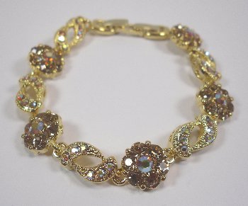Swarovski Crystal Elements Colorado Topaz/ Aurora Borealis 'Flower and Waves Links' Design Bracelet - high quality Italian design and manufacture, 24kt gold over rhodium plating, nickel free; secure foldover clasp. Measures approx. 7.5 inches/ 19 cm. £35.00 |