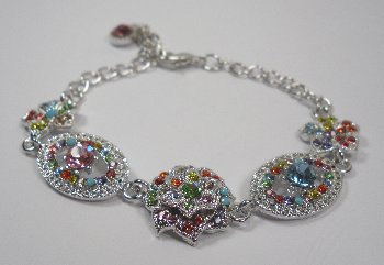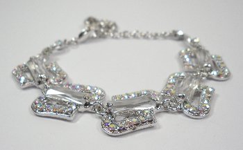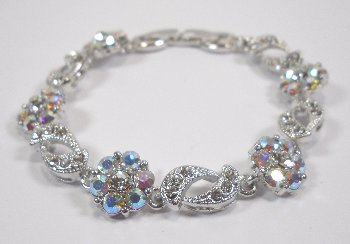 Swarovski Crystal/ Aurora Borealis 'Flower Links' Design Bracelet - high quality Italian design and manufacture, rhodium plated, nickel free; secure foldover clasp. Measures approx. 7.5 inches/ 19 cm. £35.00 |