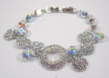 Swarovski Crystal Elements Circle Design Crystal/ Aurora Borealis Bracelet - high quality Italian design and manufacture; nickel free rhodium plated, secure foldover clasp. Measures approx. 7.5 inches/ 19 cm. SOLD |