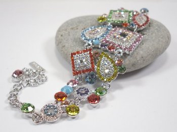 Swarovski Crystal Elements Multi Colour 'Ultimate' Bracelet - high quality Italian design and manufacture; nickel free rhodium plated, easy to use lobster style clasp. Measures up to approx. 9.5 x 1.5 inches/ 24 x 4 cm using the extender chain. £64.00 |